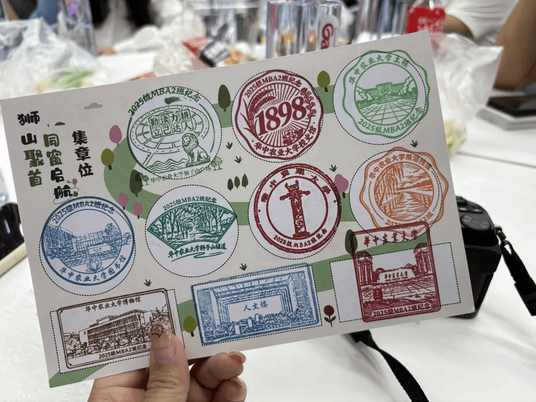 二班同学们手持“打卡任务卡”,奔赴校园标志性建筑打卡盖章。班委们也为同学们设计了不同打卡点的邮戳,每个邮戳都是迷你的校园标志性建筑。在寻找打卡点的过程中,大家不仅熟悉了校园环境,更在交流中了解华中农大的办学底蕴与文化精神,让“华农人”的身份认同感愈发强烈。