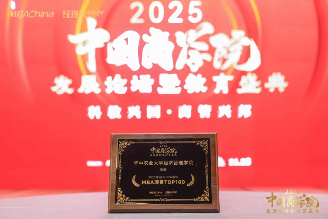 盛典现场,备受瞩目的“2025年度中国商学院MBA项目TOP100榜单”权威发布。凭借在人才培养、学科建设、社会服务等方面的突出表现,华中农业大学经济管理学院MBA项目不仅连续入选该权威榜单,更实现位次稳步提升,充分彰显了项目日益增强的综合竞争力与行业认可度。